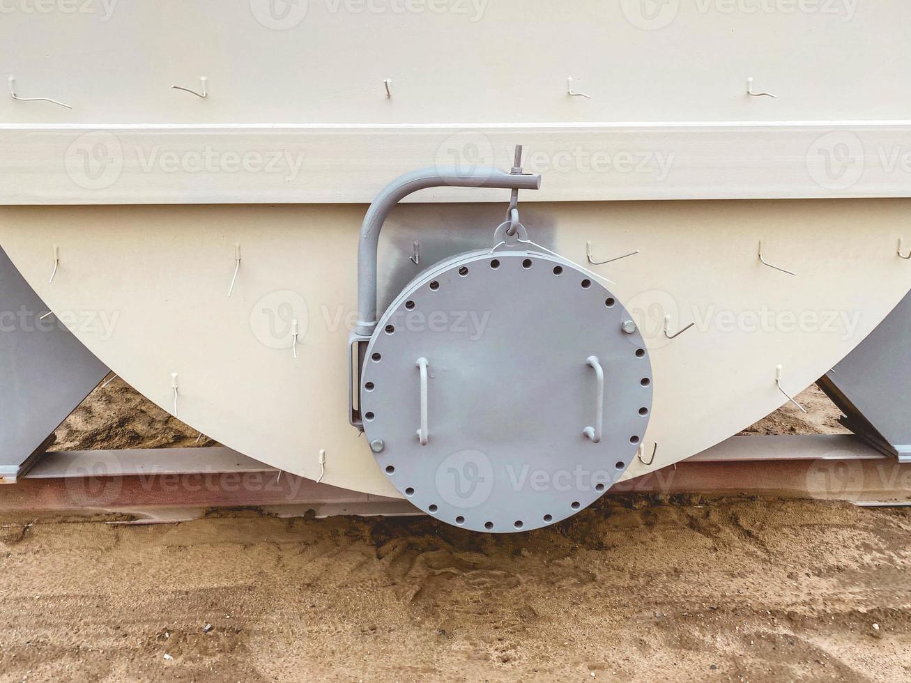 metal container. deep container for building materials. dilution of concrete in a high huge volumetric tank. texture with circle. convenient handles for opening the container Pro Photo