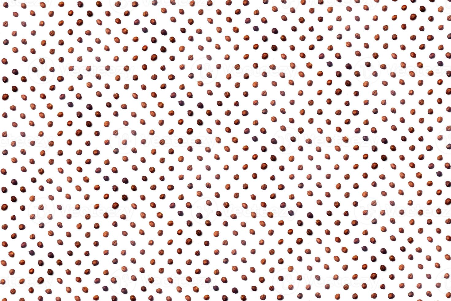 A collection of hazelnuts lie in straight rows along dioganals on an isolated white background. with clipping path. Hazelnuts pattern Pro Photo