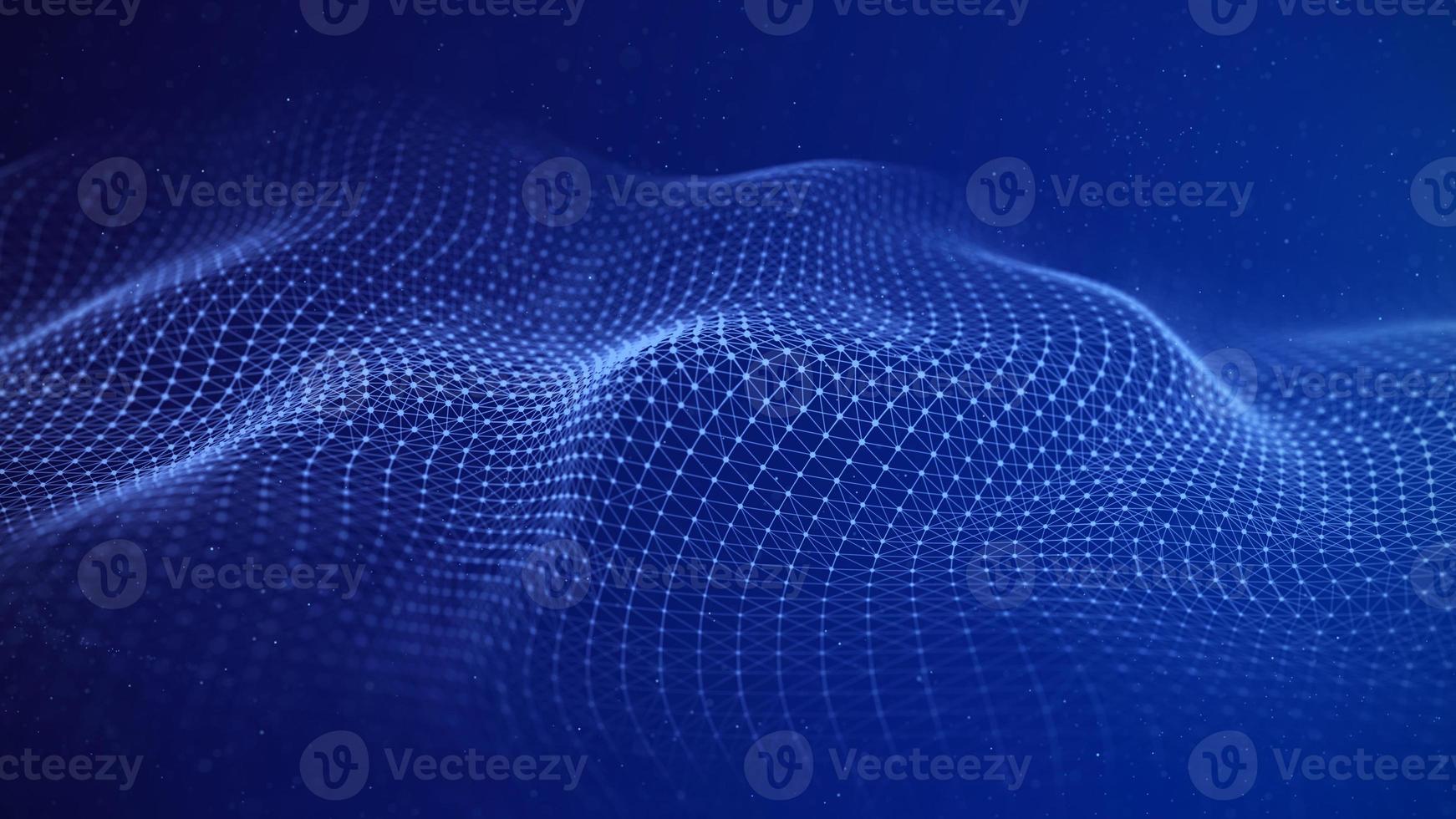 A wave with connecting dots and lines. Futuristic relief on a blue background. Visualization of big data. 3d rendering. Pro Photo