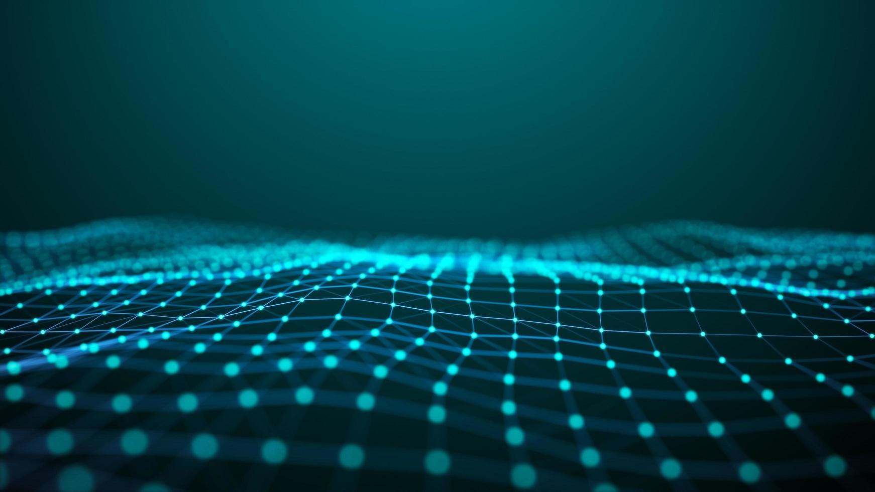 A wave with connecting dots and lines. Network connection. Abstract of the technology. Artificial intelligence. Blue background. 3d rendering. photo