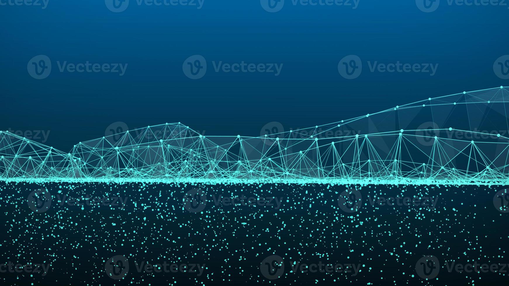 The scene of creating a network connection from particles. Futuristic blue background. The connection of particles. Visualization of big data. Abstract to science and technology. 3d rendering Pro Photo