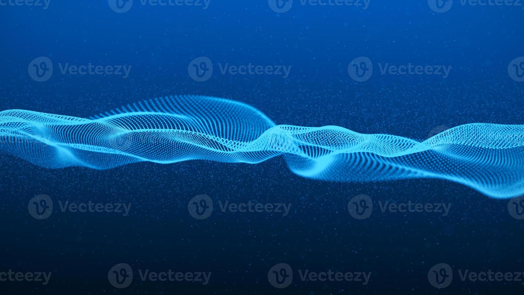 Dynamic blue wave on a blue background. Big data. A futuristic wave of particles. Science and technology. 3d rendering. Pro Photo