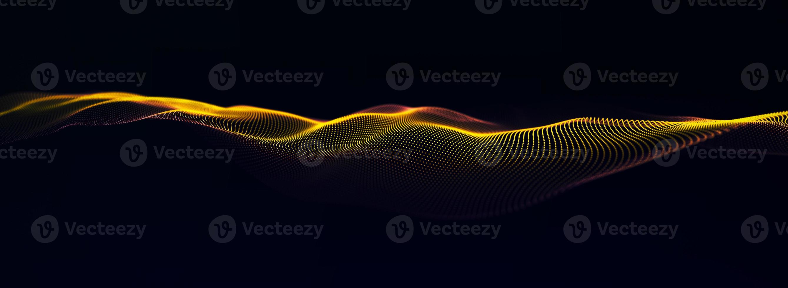 Dynamic golden wave on a dark background. Visualization of big data. Futuristic particle wave. Science and technology. 3d rendering. Pro Photo