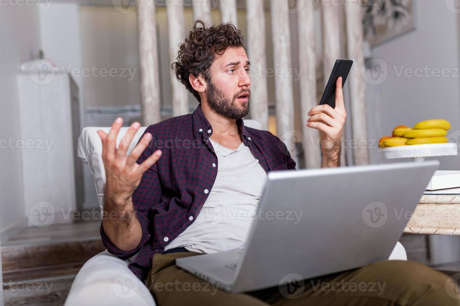Business man at home on mobile yelling and screaming about bad report and failure with project, mad boss angry about software bugs in application for work Pro Photo