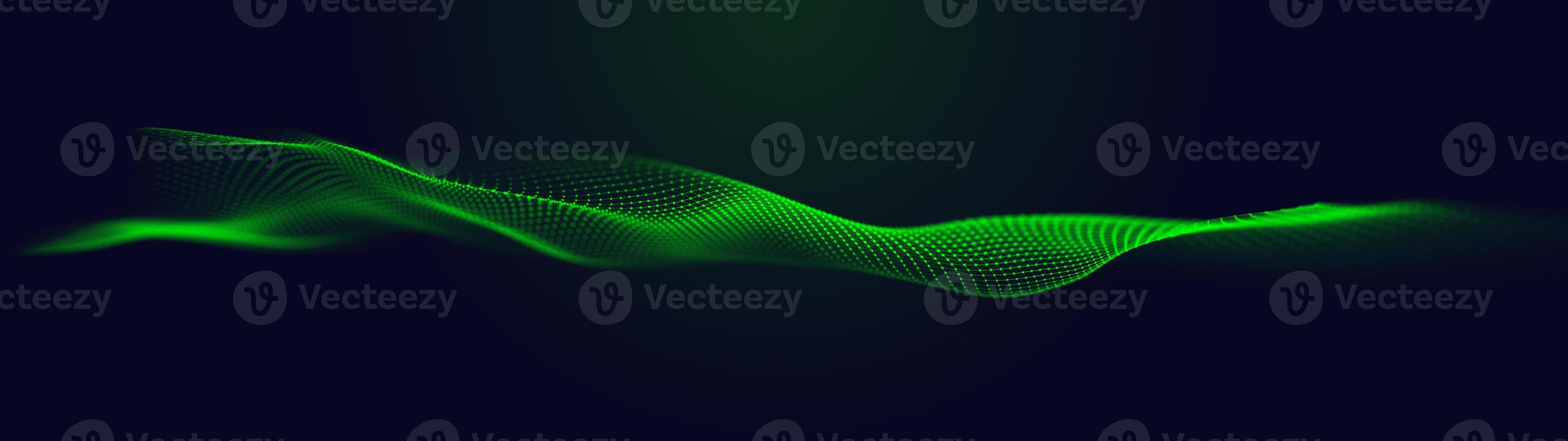 Futuristic green glowing wave. The concept of big data. Network connection. Cybernetics. Abstract dark background of green lines with dots. 3d rendering. Pro Photo