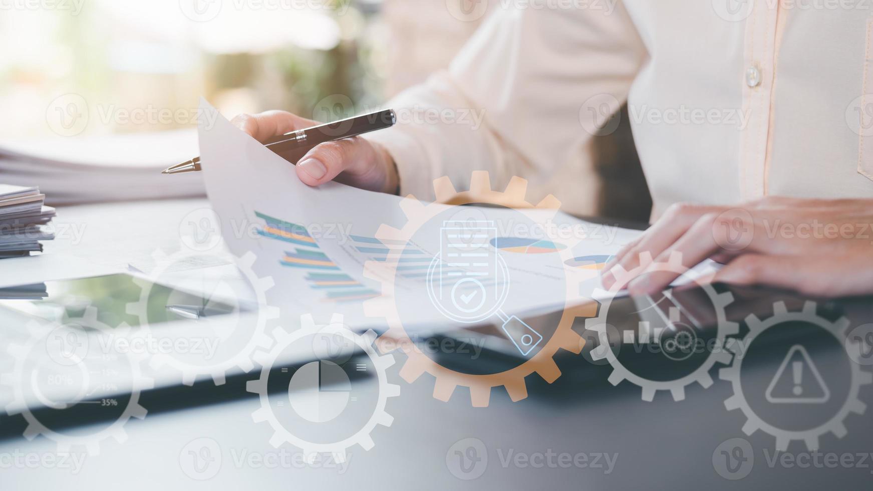 Businessman Audit documents, quality assessment management With a checklist, business document evaluation process, market data report analysis and consulting, plan review process,Document Management Pro Photo