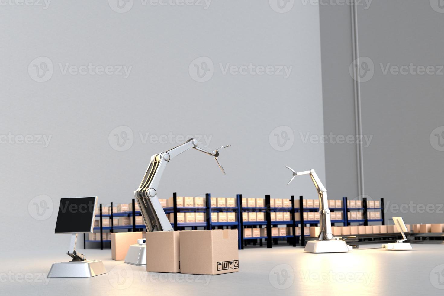 Robot arm Object for manufacturing industry technology Product export and import of future Robot cyber in the warehouse by hand mechanical Robot arm future technology Pro Photo