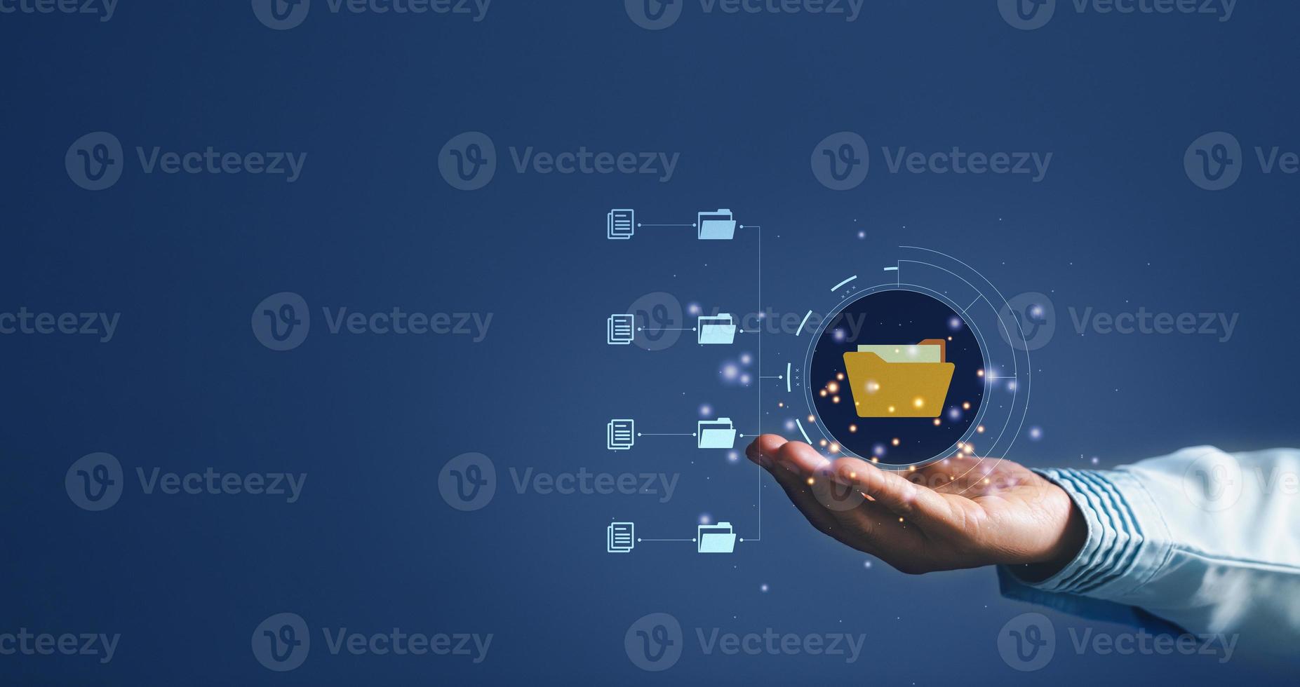 Online documentation database and process automation to efficiently manage files, IT staff working with Document Management System DMS, Corporate business technology. Cognition on modern management. Pro Photo
