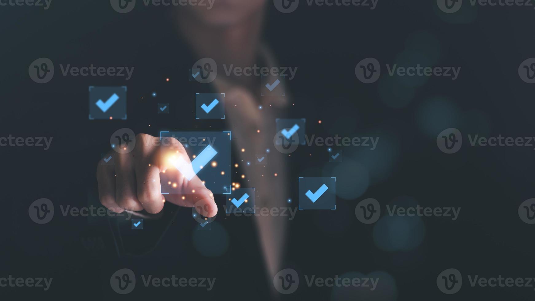 Checkmark about topic exploration,In the virtual icon check box,checklist ideas, checkbox to conduct opinion and quality surveys or satisfaction,Connect and work with modern wireless technology Pro Photo