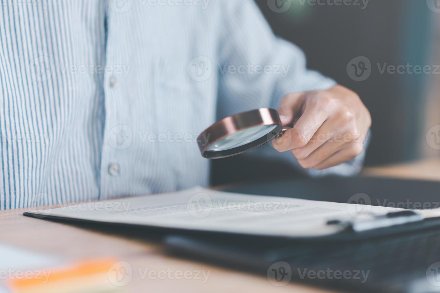 accountant holding a magnifying glass,Audit Document Concepts, quality assessment management With a checklist, business document evaluation process, market data report analysis and consulting Pro Photo