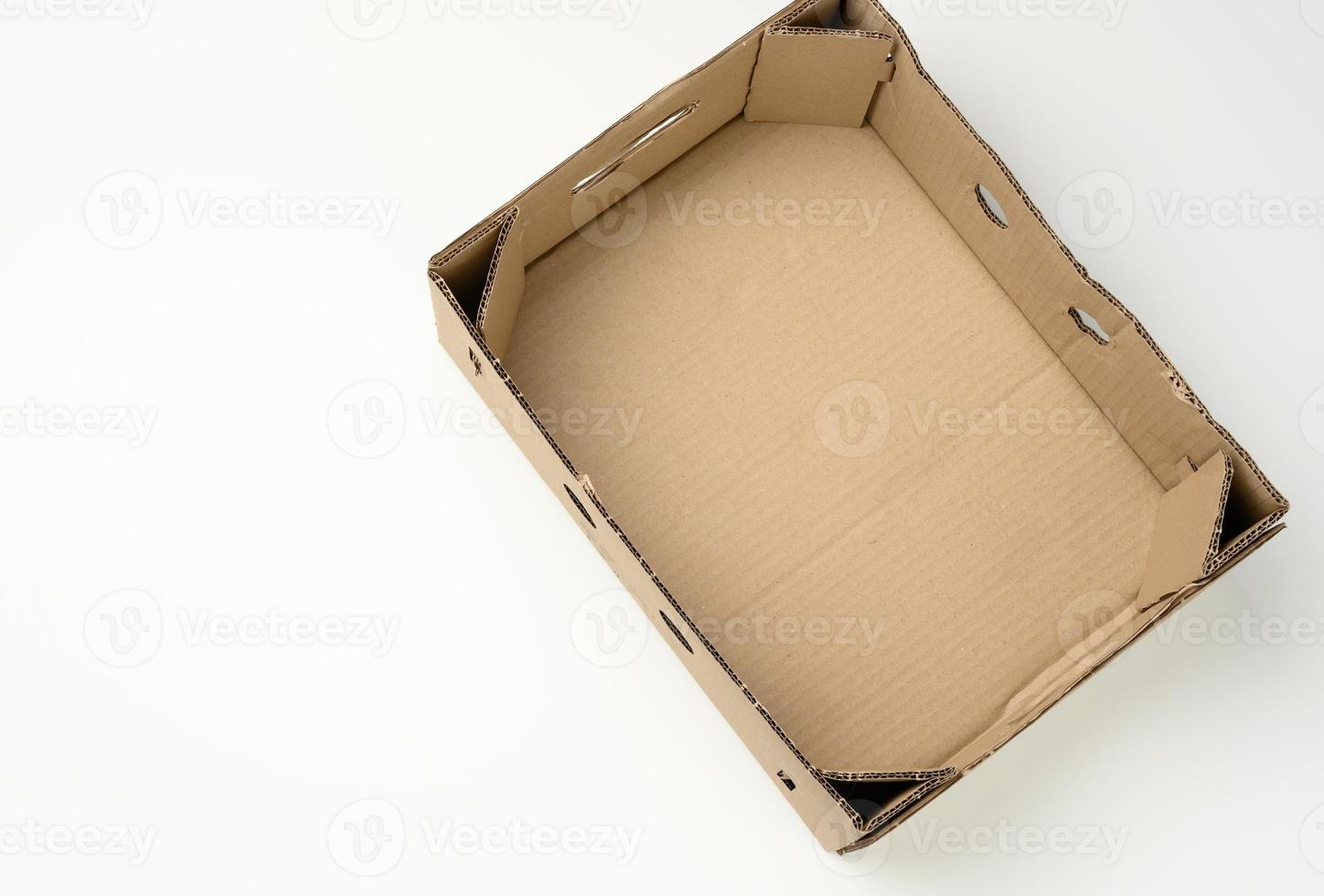 rectangular empty cardboard box of brown paper on a white background, box without a lid for vegetables and fruits in with holes Pro Photo