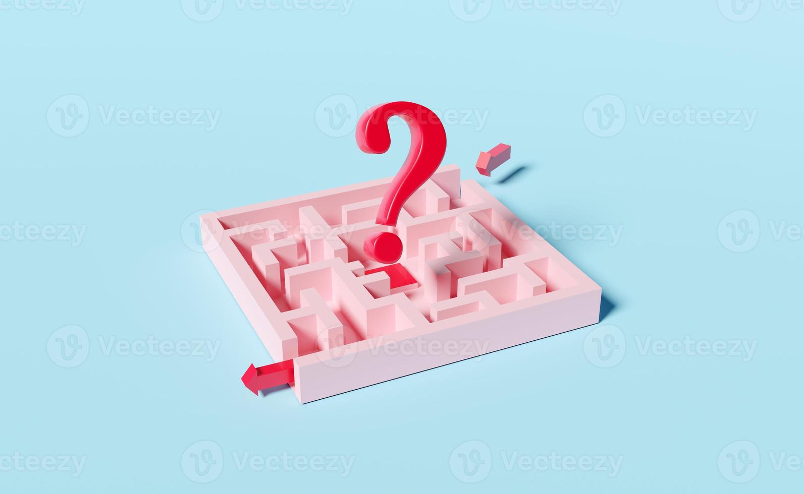maze with question mark symbol, arrow isolated on blue background. FAQ or frequently asked questions, finding solution, business strategy concept, 3d illustration, 3d render Pro Photo
