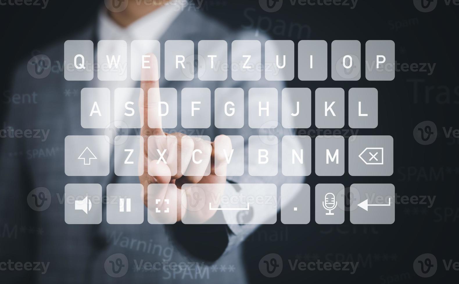 Email concept with laptop spam and virus computer monitor internet security concept, Businessman touch keyboard security icon mail, Spam, junk and e-marketing on screen, Spam Email Pop-up Warning Pro Photo