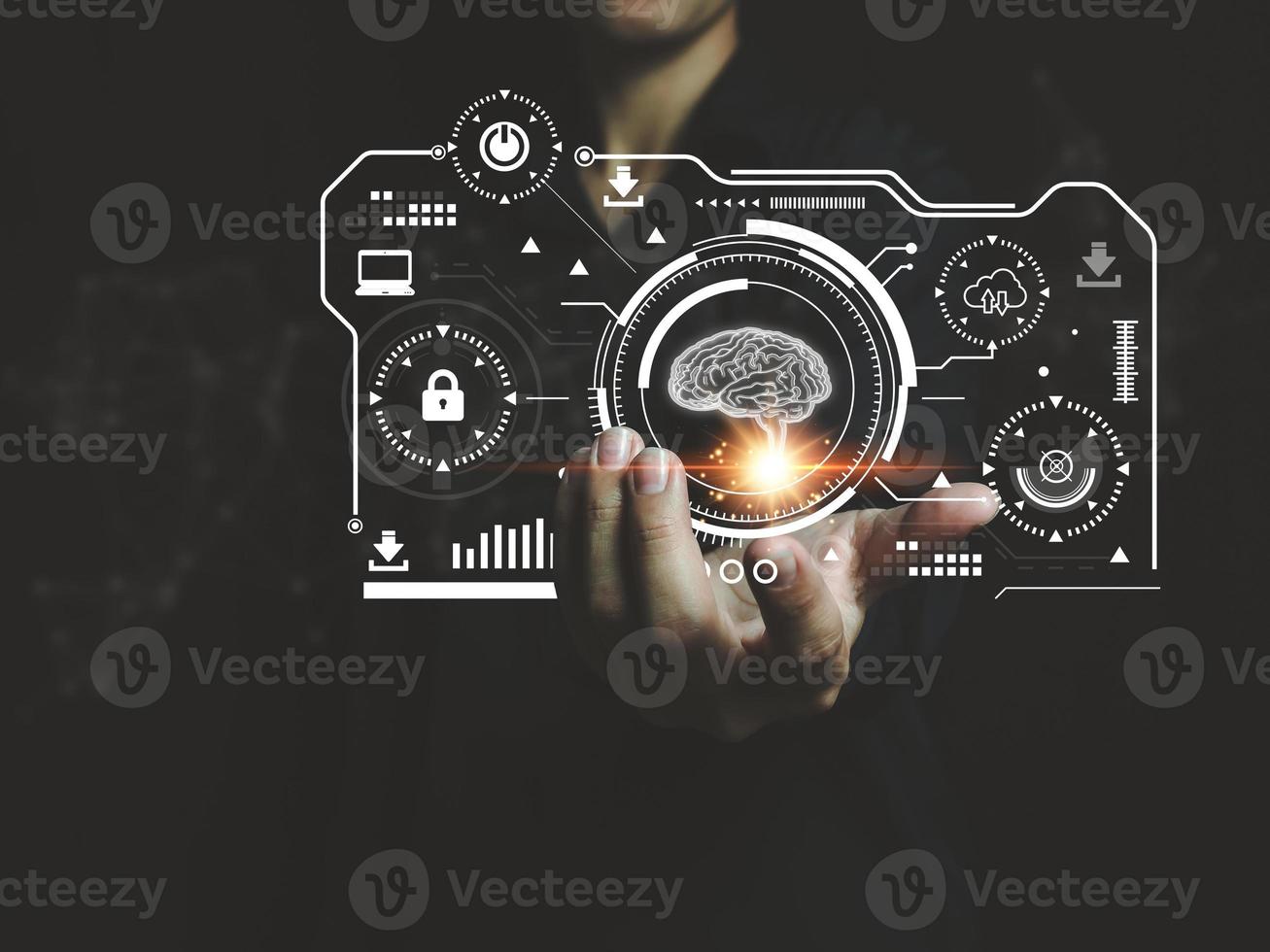 business people showing artificial intelligence Access Management Helper in managing documents, preventing unauthorized access to personal information. Pro Photo