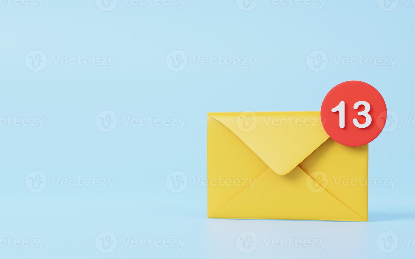 3D Envelope icon with notification. Mail envelope with marker message. Email newsletter marketing concept. Cartoon illustration isolated on purple background. Minimal design. 3D Rendering Pro Photo