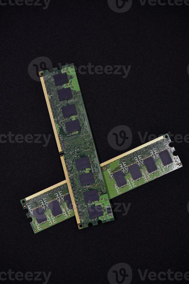 Blue RAM bars on a black background. Computer memory chips. Computer chips. Pro Photo