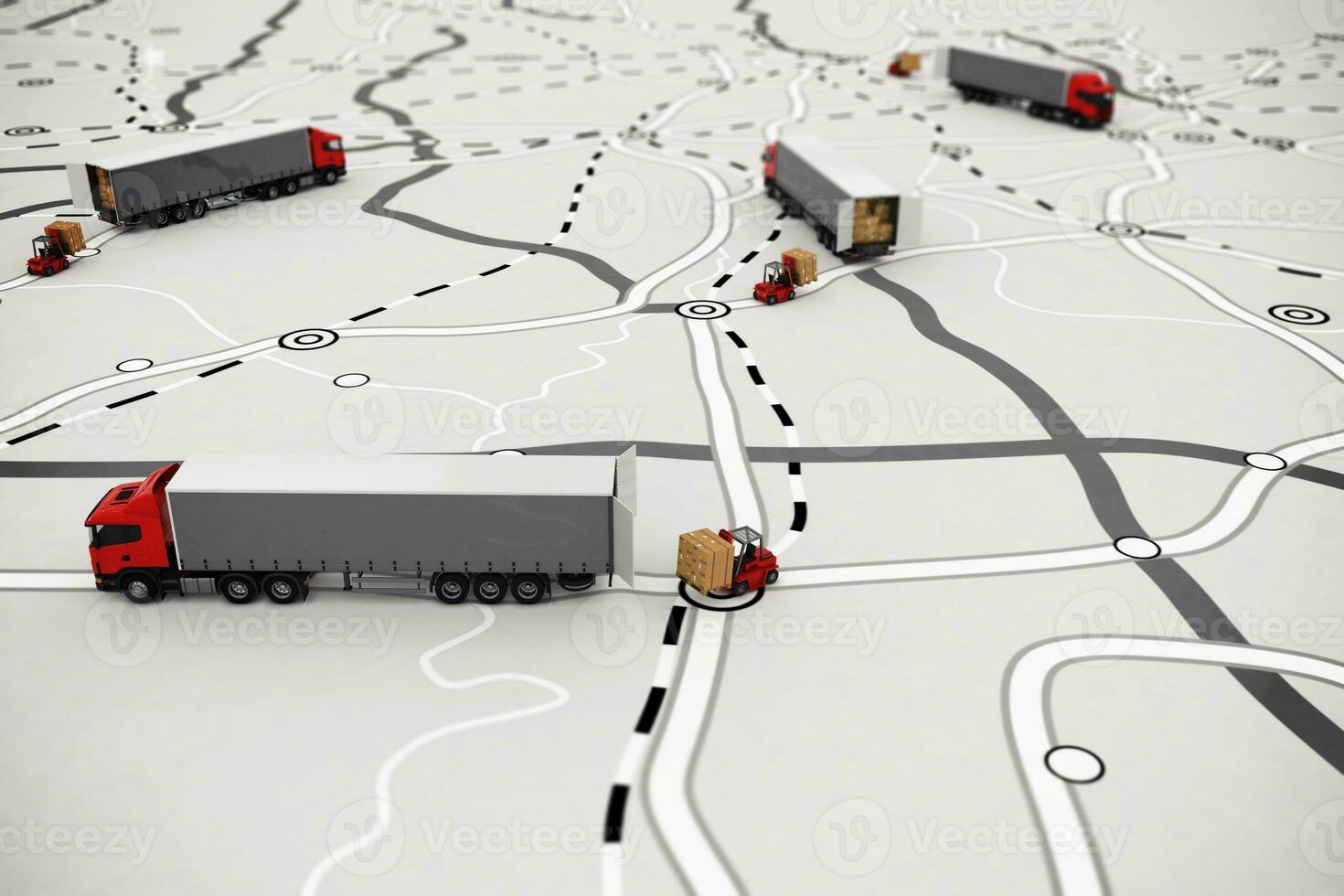 Loading and unloading goods on a map. 3D Rendering Pro Photo