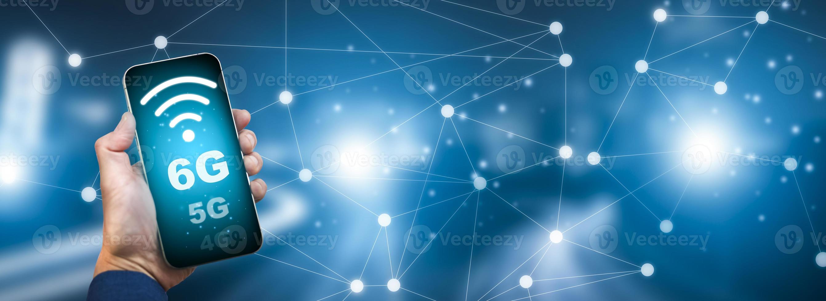 Global network connection 6G concept, Hand hold Smartphone with connection 6G with icon concept, technology network wireless systems and internet of things, new technologies coming up in the future. Pro Photo