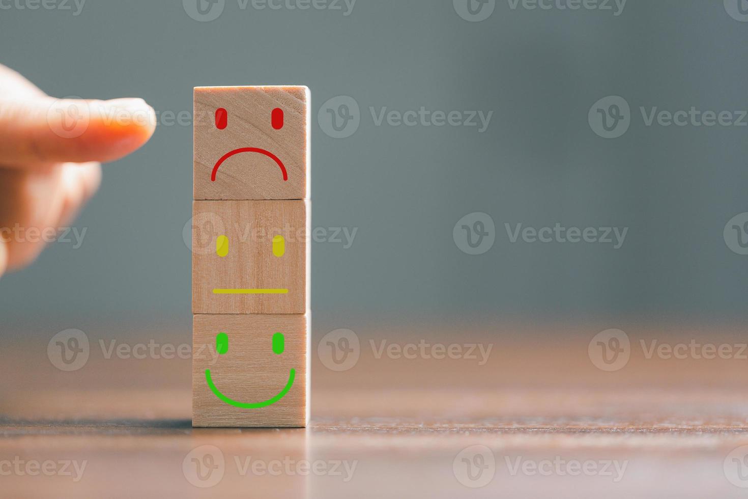 Rating feedback scale on wood cube with copy space. Service rating, dissatisfied with satisfaction concept, Bad review, bad service dislike bad quality, low rating, negative social media not good. Pro Photo