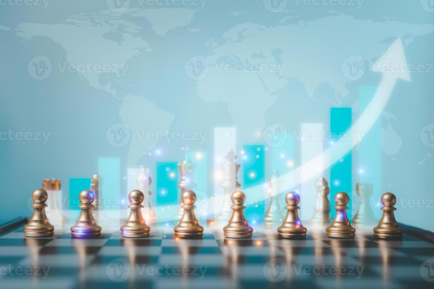 Selective focus of chess and growth business graph behind chess. World map in the background. The concept of the key success of business and finance is an analysis and strategy with professional. Pro Photo