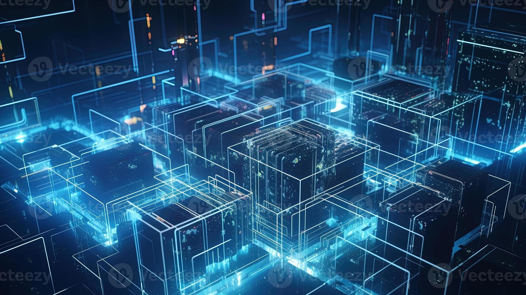 3D rendering of abstract technology concept. Futuristic cyberspace background,Abstract 3d rendering of data processing. Futuristic technology style Pro Photo