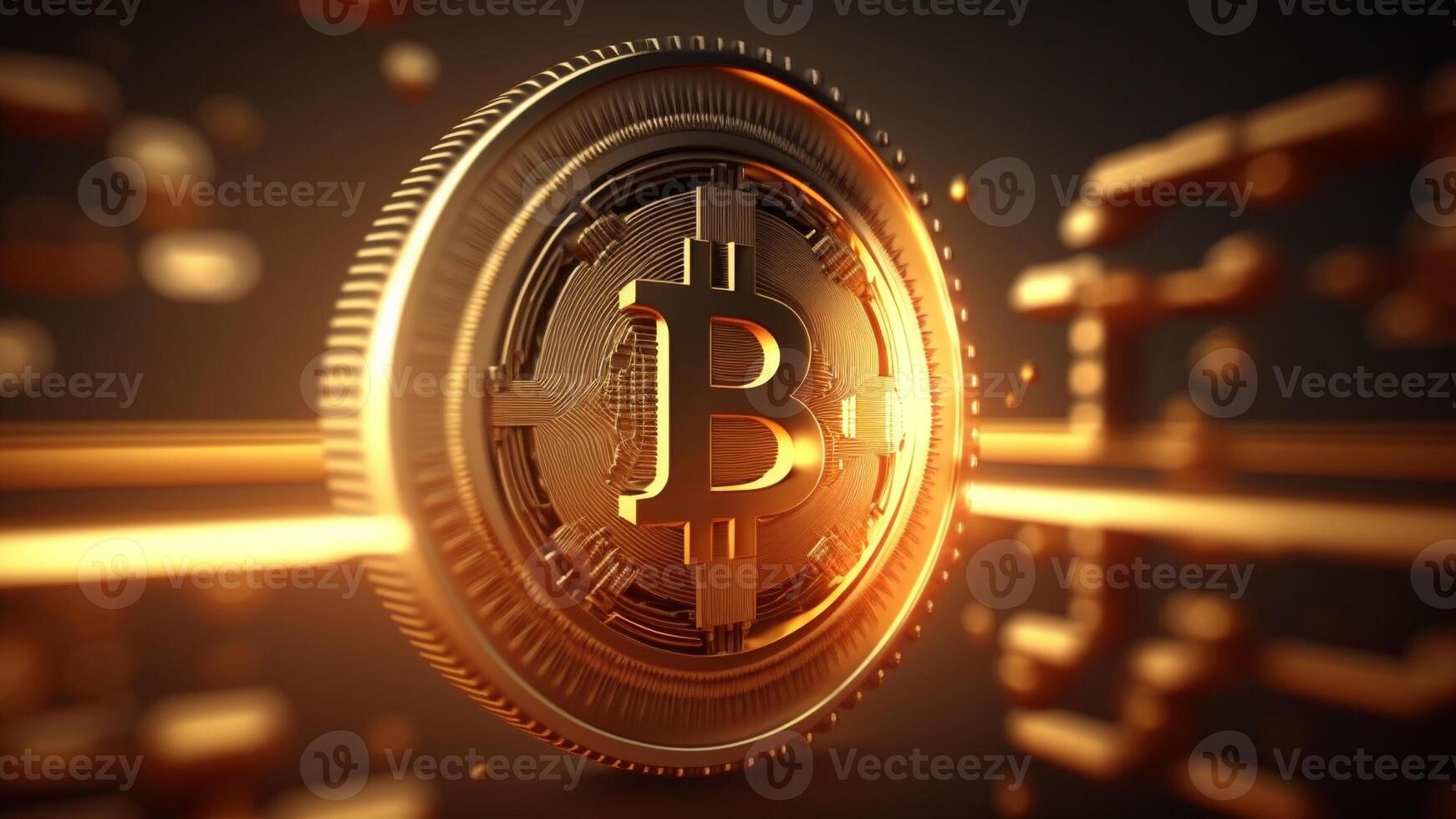 Golden Bitcoin blockchain technology isometric concept suitable for future technology with Technology Pro Photo