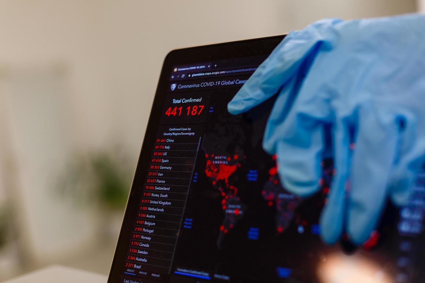 Screenshots from computer from gisanddata.com website reporting on Coronavirus Wuhan outbreak. Kyiv, Ukraine - MARCH 25, 2020 photo