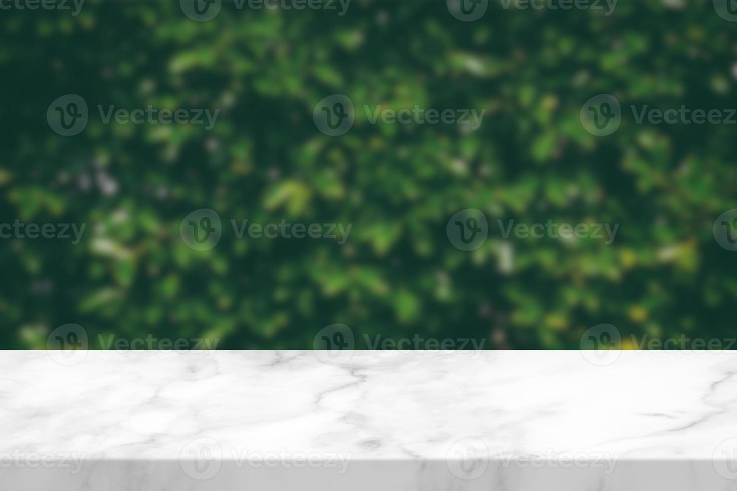 White Marble Table with Blurred Green Garden Background, Suitable for Product Presentation Backdrop, Display, and Mock up. Pro Photo