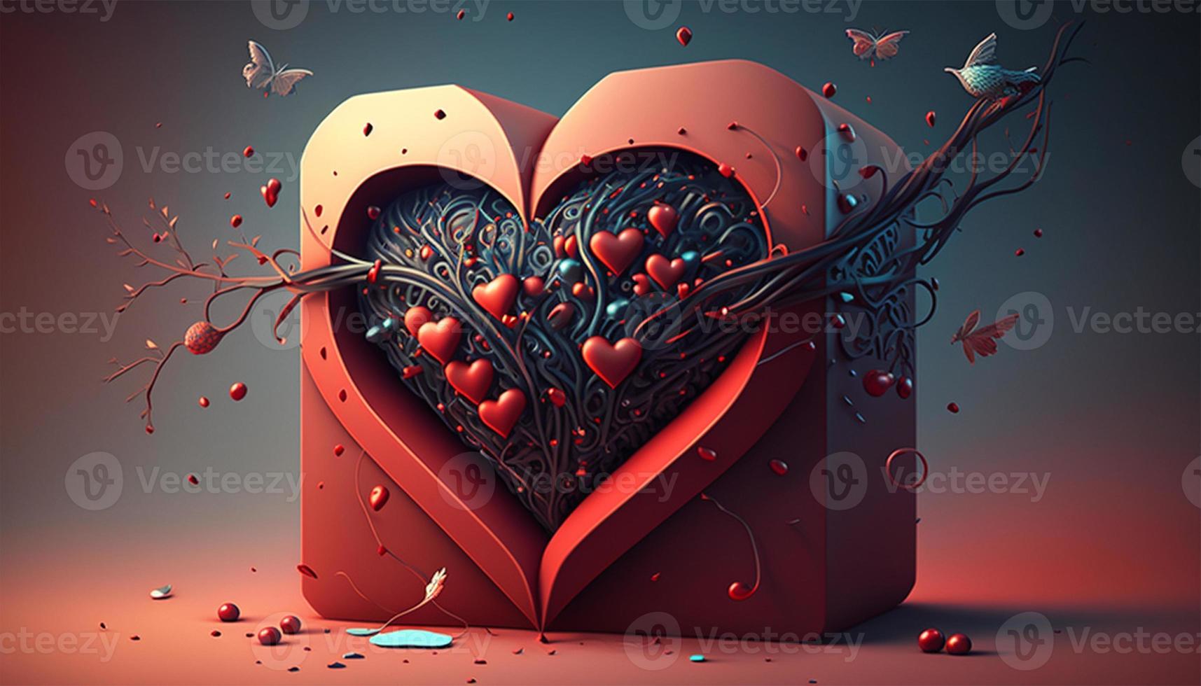Happy valentines day in the box and branch element with gradient background. Generative Ai. Pro Photo