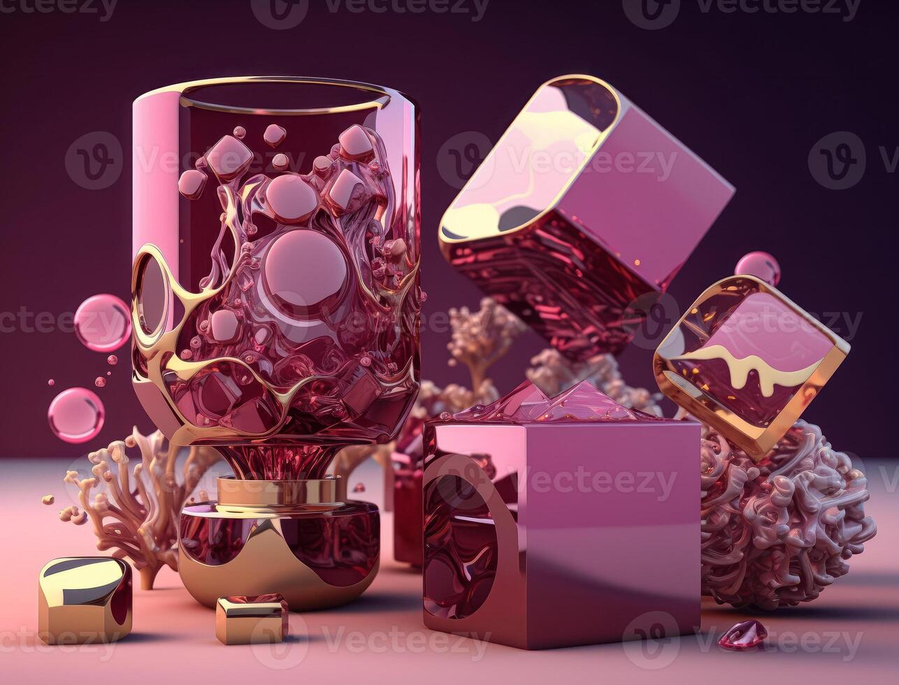 Vibrant pink and gold abstract composition of colorful circular shapes arranged in a grid pattern was created with technology Pro Photo