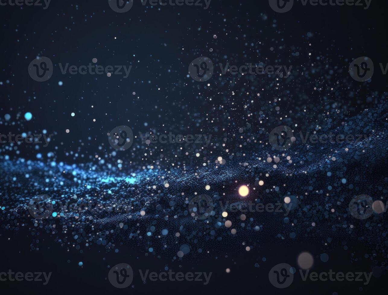 Dark blue and glow particle abstract background Blurry bokeh background with sparkles, particles and glitter created with technology Pro Photo