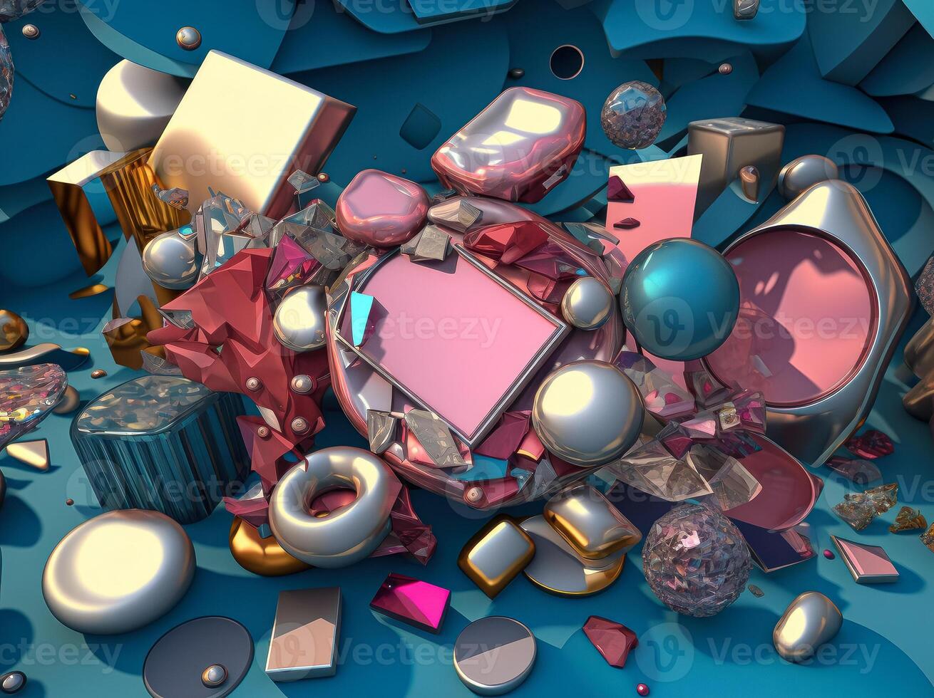 Vibrant pink and gold abstract composition of colorful circular shapes arranged in a grid pattern was created with technology Pro Photo
