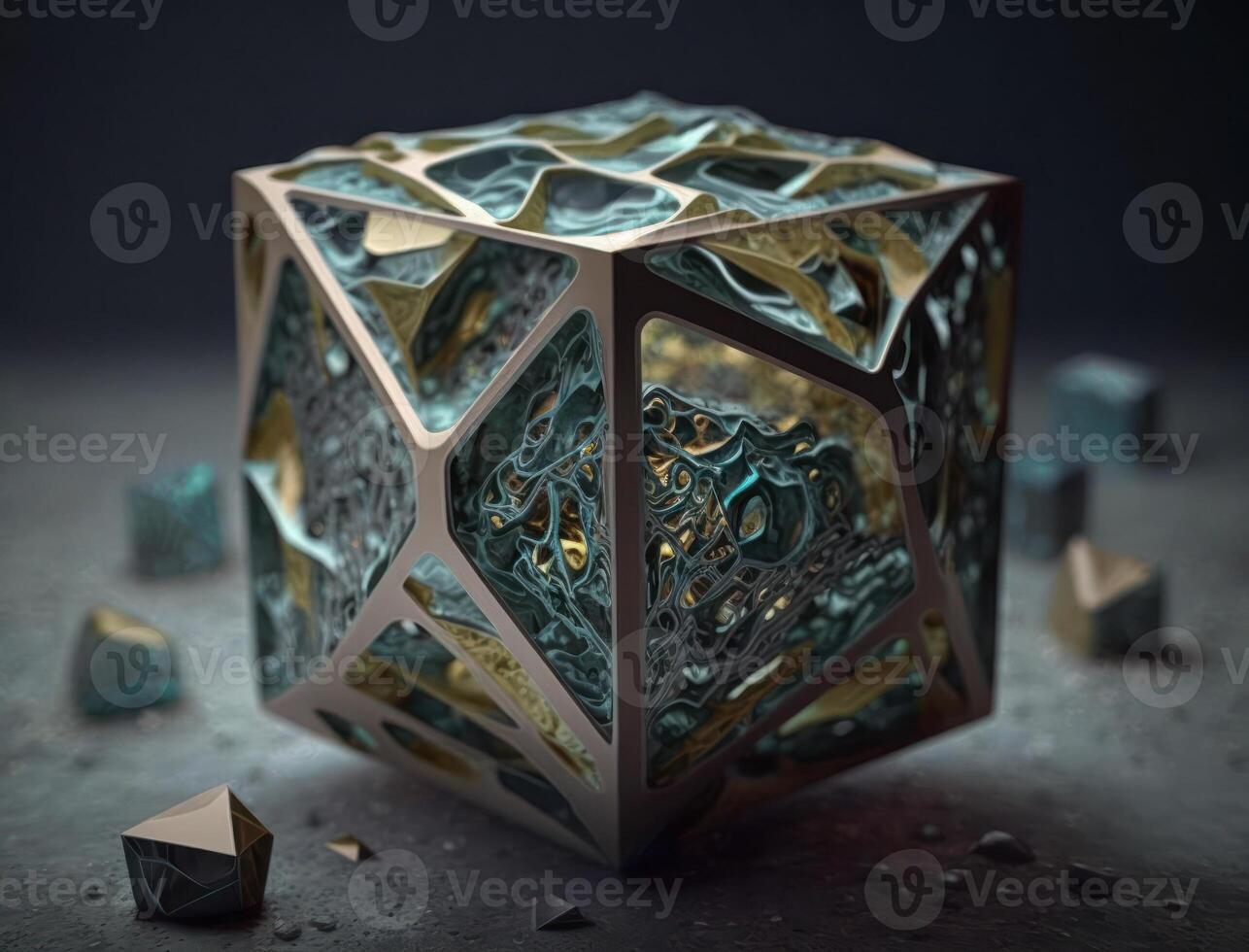 Abstract chaotic geometric background Glossy pyramids and spheres background created with technology Pro Photo