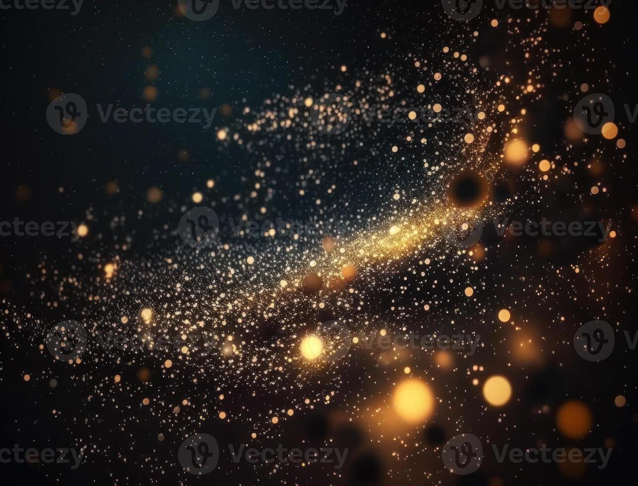 Dark blue and glow particle abstract background Blurry bokeh background with sparkles, particles and glitter created with technology Pro Photo