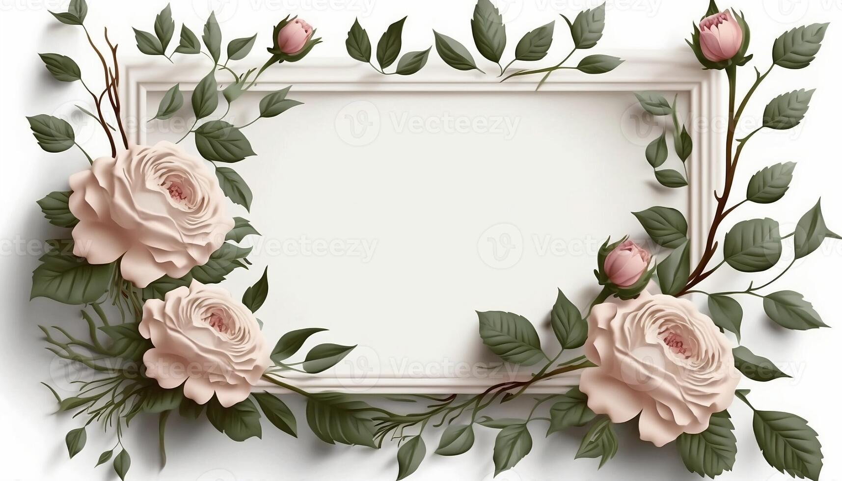 Rectangular Rose Flower Frame Surrounded With Twigs of Foliage in Aesthetic Style Background - Pro Photo