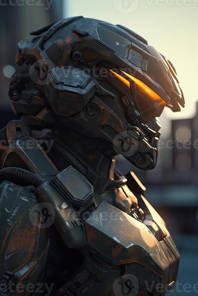 Close up A robot from the future. cyborg futuristic holographic technology. Portrait of a cyborg robot. The concept for Artificial Intelligence. Pro Photo
