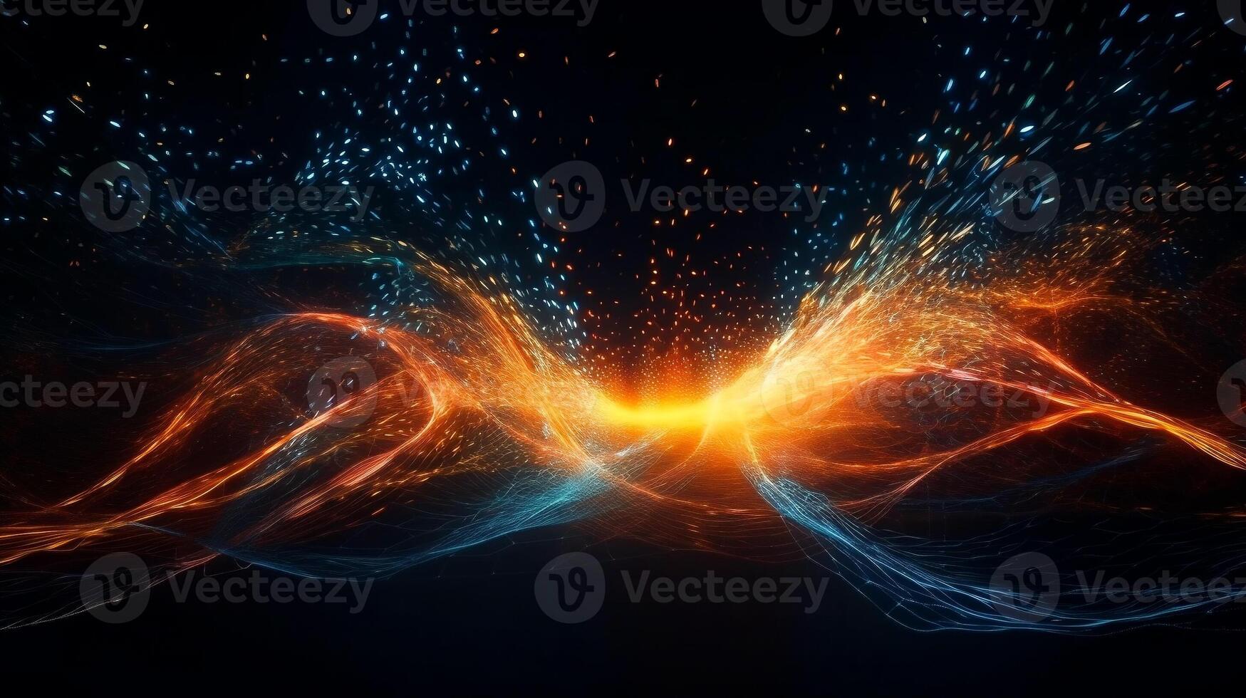 Network line of connecting stream with wave of particles representing information technology. . Pro Photo