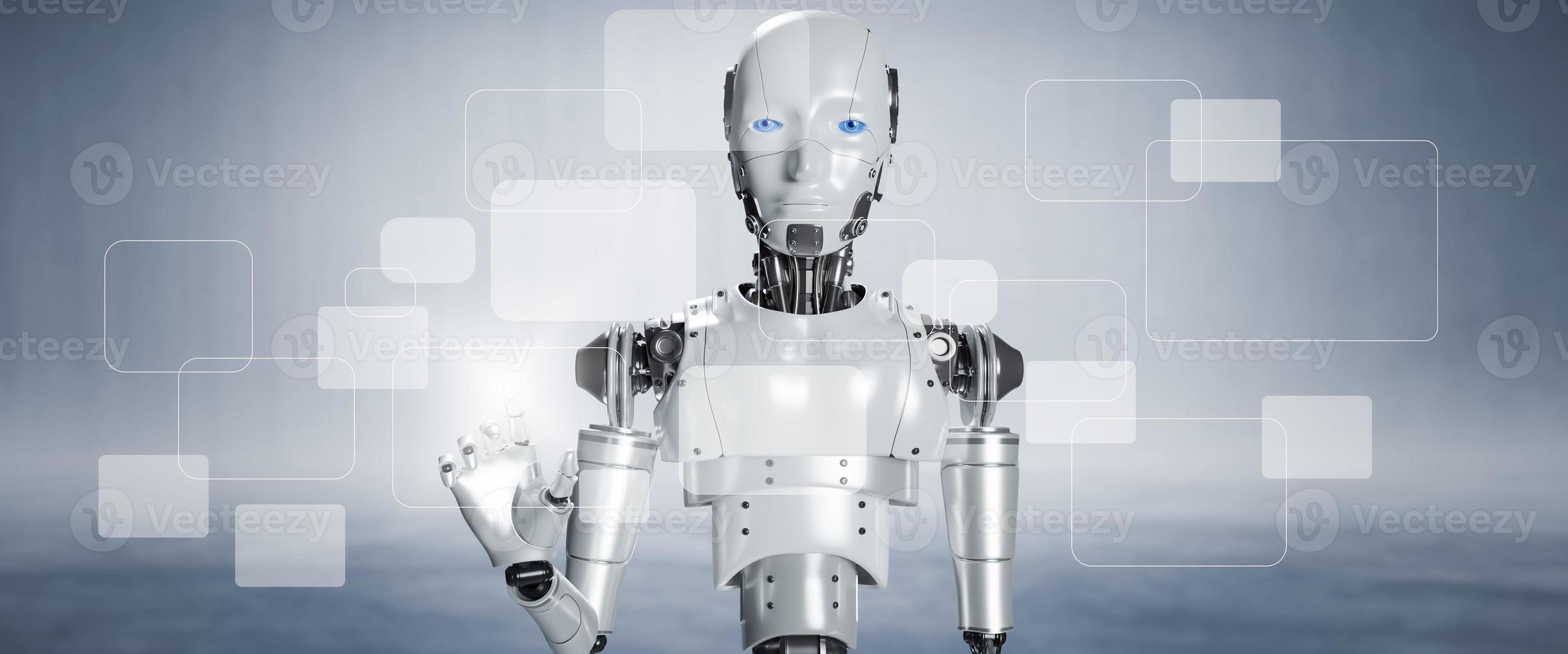 3D rendering robots touch button empty on the graph Screen Icon of media screen, Technology Process System Business with Communication, Concept Business, technology, social media. Pro Photo