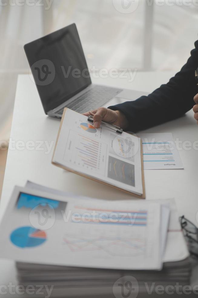 Business professionals. Group of young confident business people analyzing data using computer while spending time in the office Pro Photo