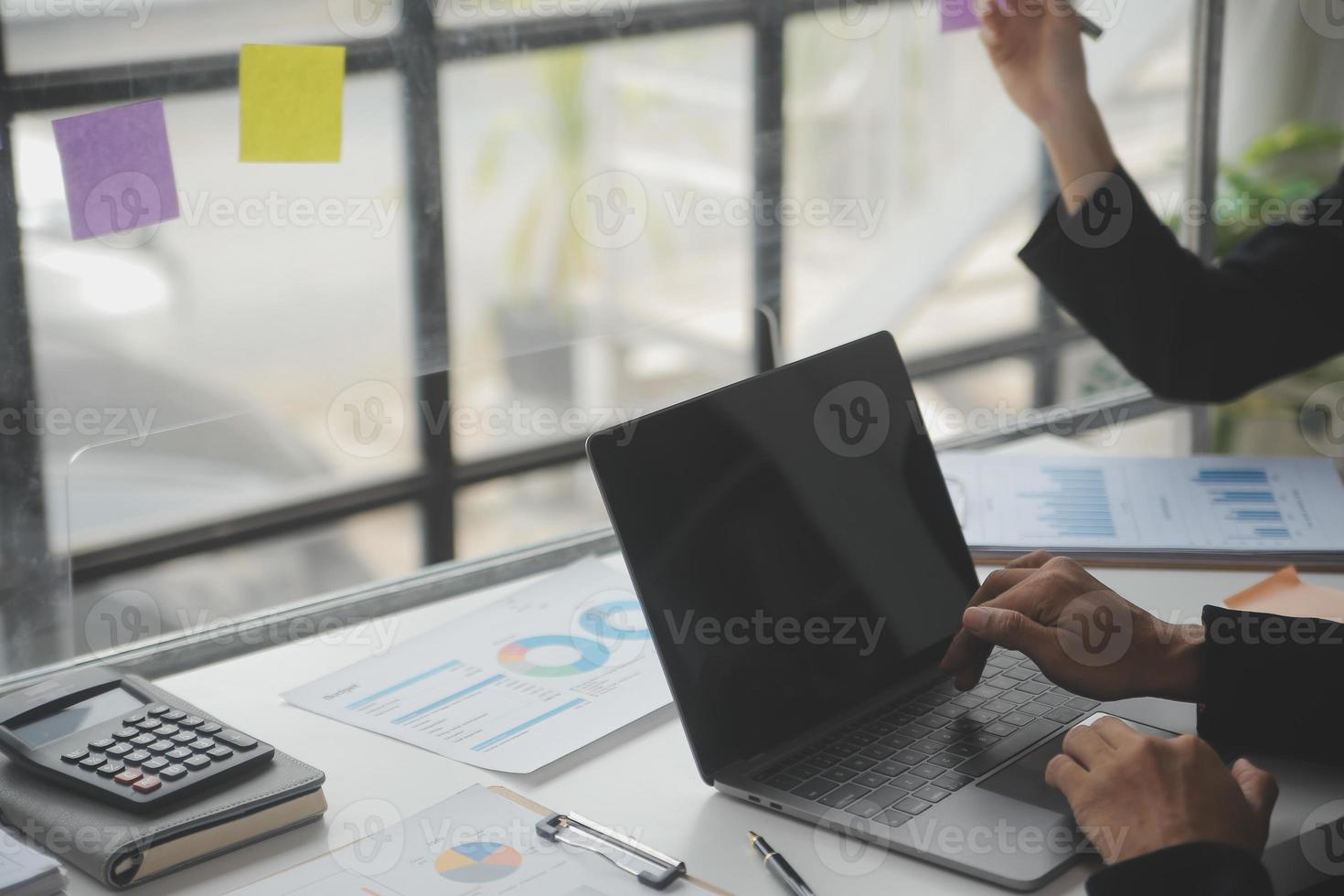 Business professionals. Group of young confident business people analyzing data using computer while spending time in the office Pro Photo