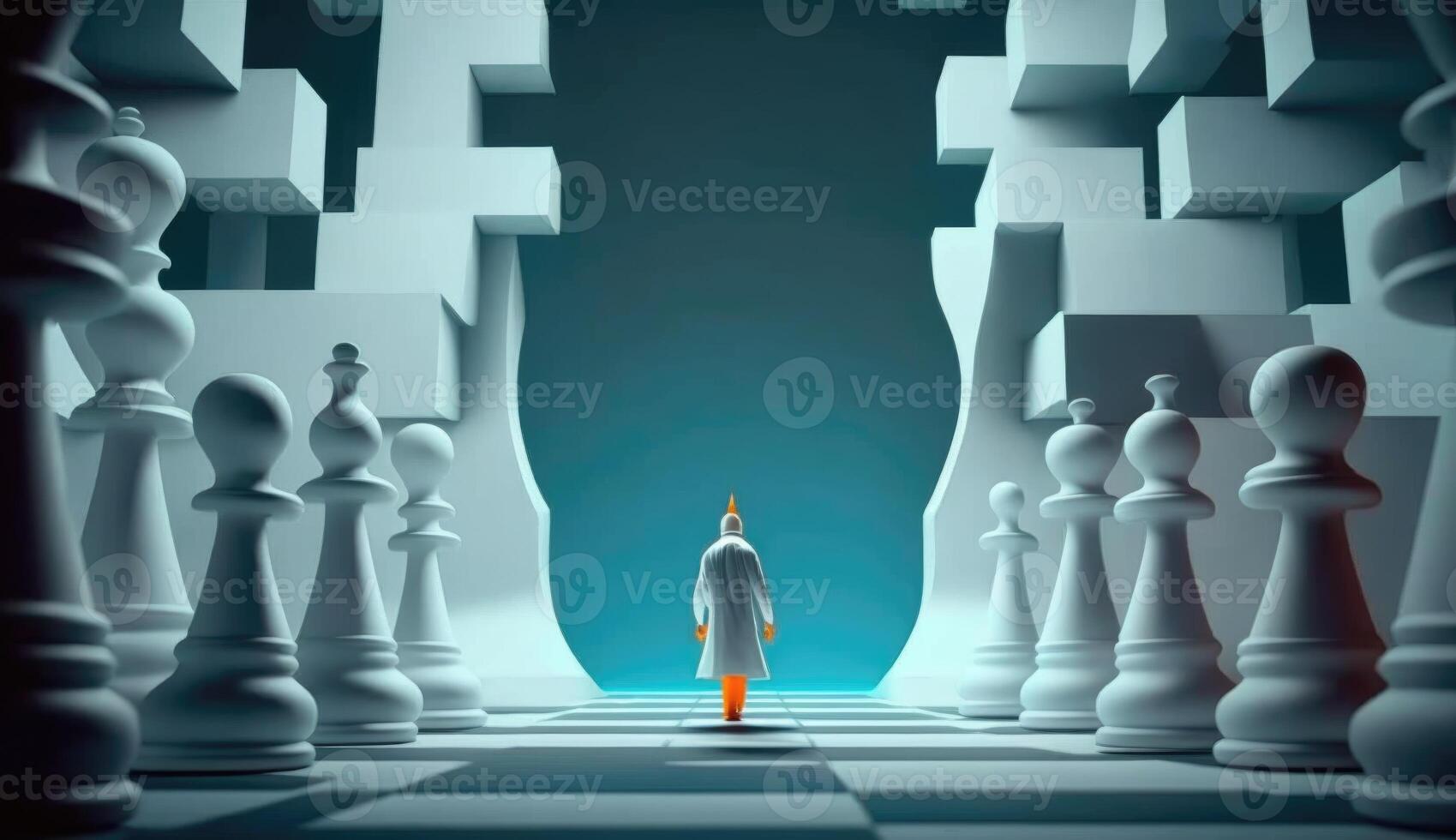 Conceptual image of a man standing in front of a chessboard Pro Photo