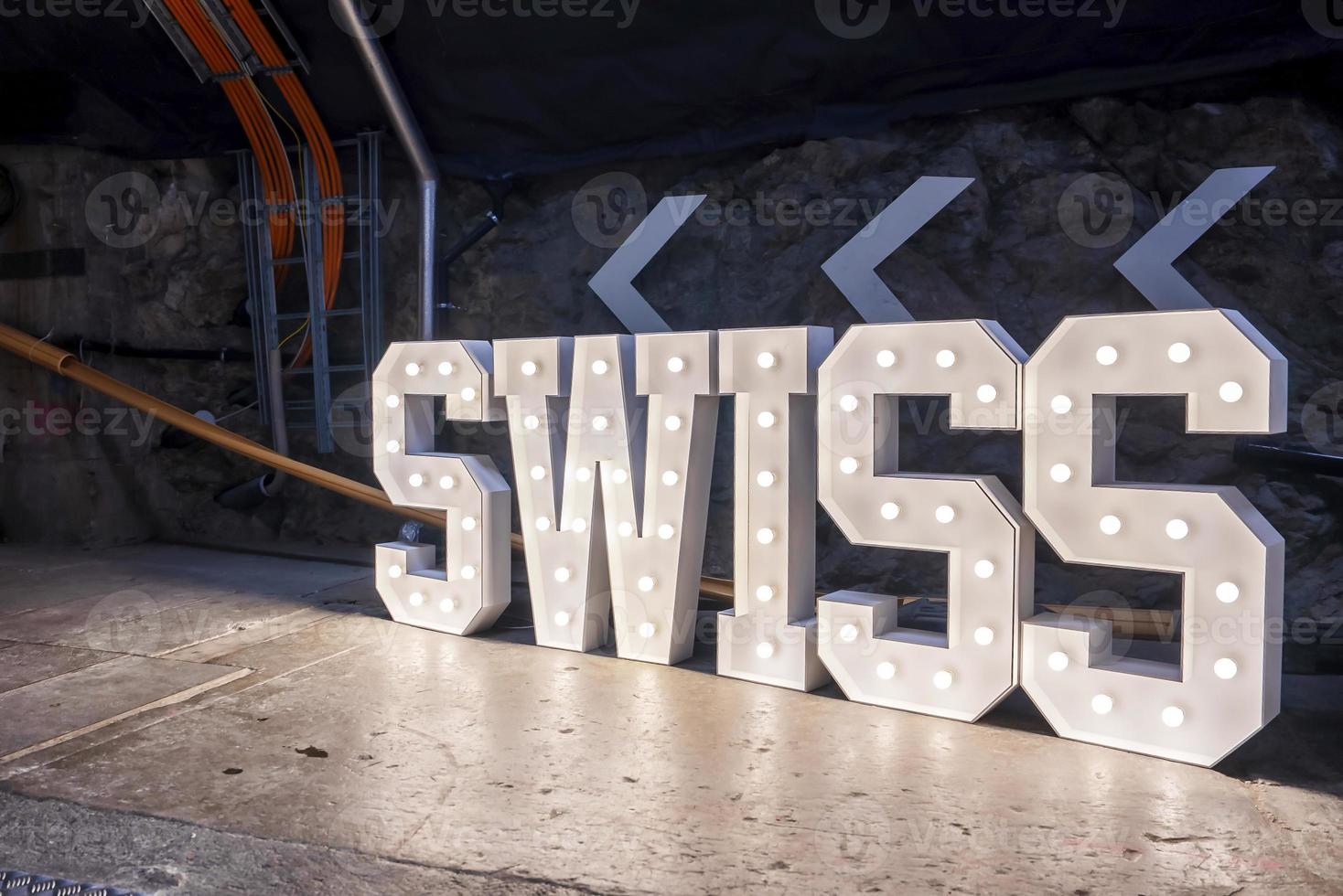 Illuminated swiss text structure at Jungfrau railway inside Bernese Alps Pro Photo
