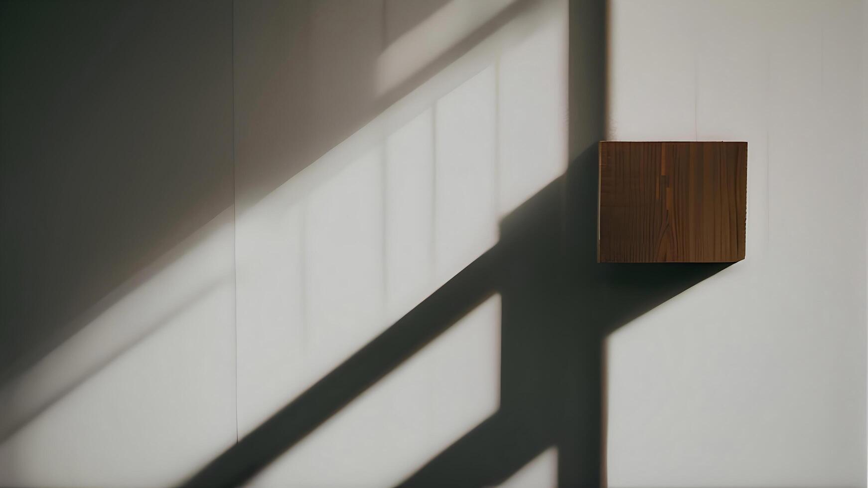 A wooden cube on a wall with the light coming through the window photo