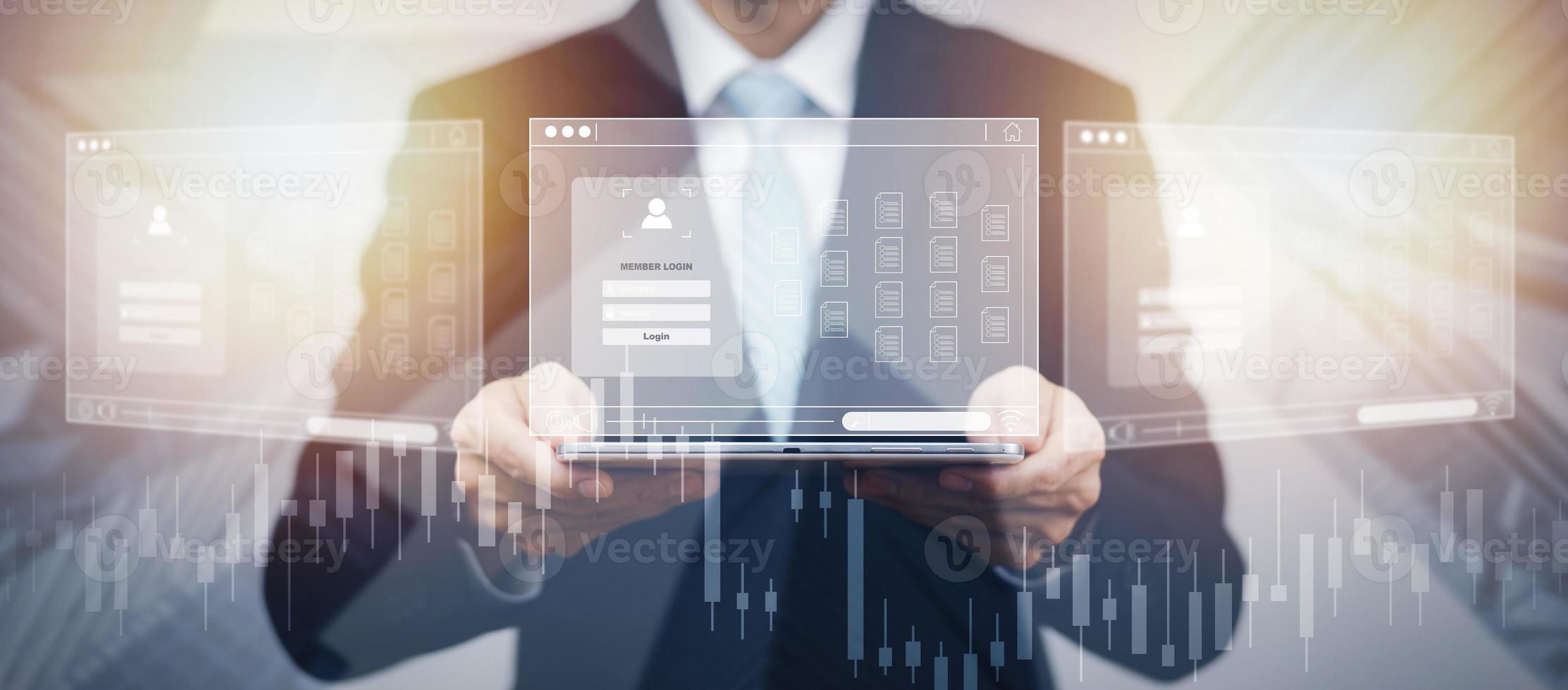 Businessman hand hold folder of document Management System, online documentation database and process automation to efficiently manage files work, knowledge, Corporate business technology. Pro Photo