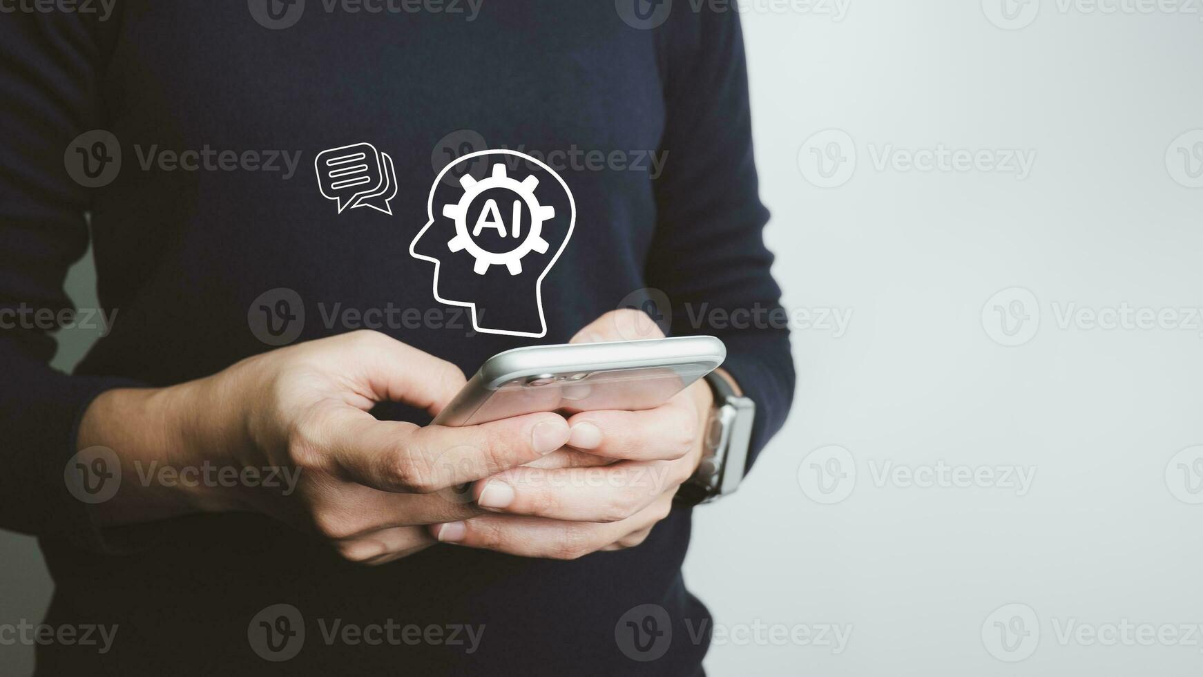 AI technology, Artificial Intelligence, Chatbot Chat and talk with AI, Using search and find data by command prompt, robot learning machine create or generate picture or article auto Pro Photo