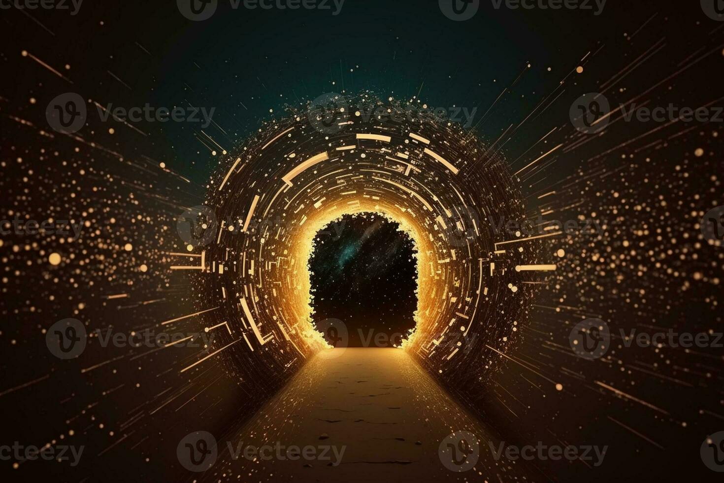 Digital tunnel of cyberspace with particles and lighting, Technology network connections abstract background concept AI Generated Pro Photo