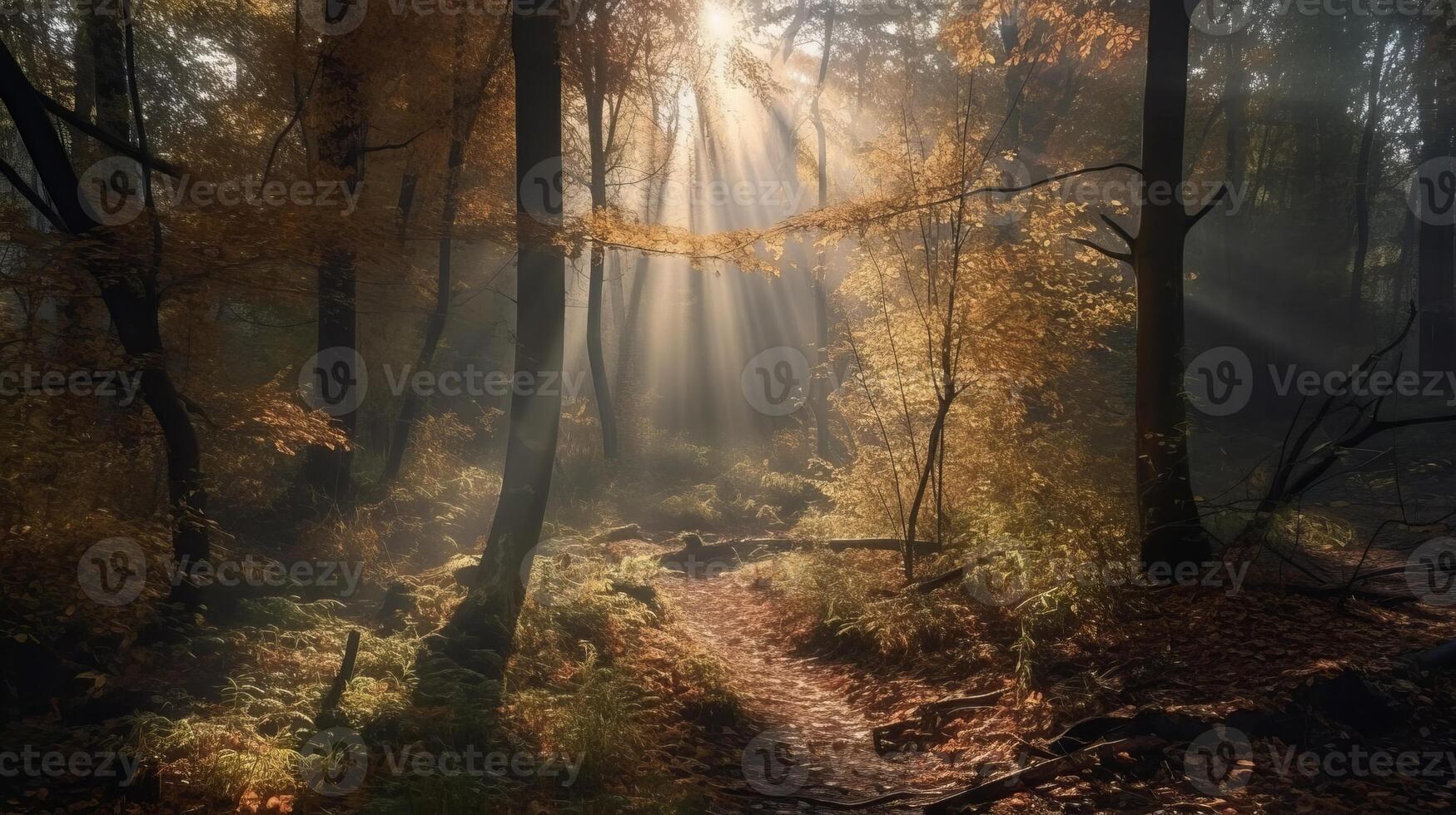 Exquisite scene of an gather time forest with sunrays entering through the branches. Pro Photo
