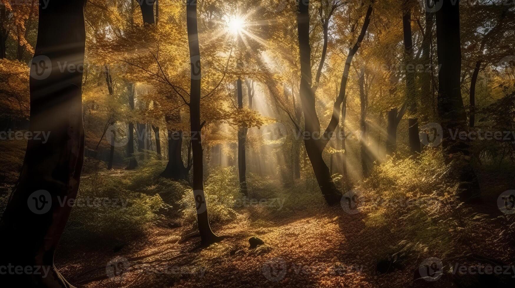 Disorienting scene of an gather time timberland with sunrays entering through the branches. Pro Photo