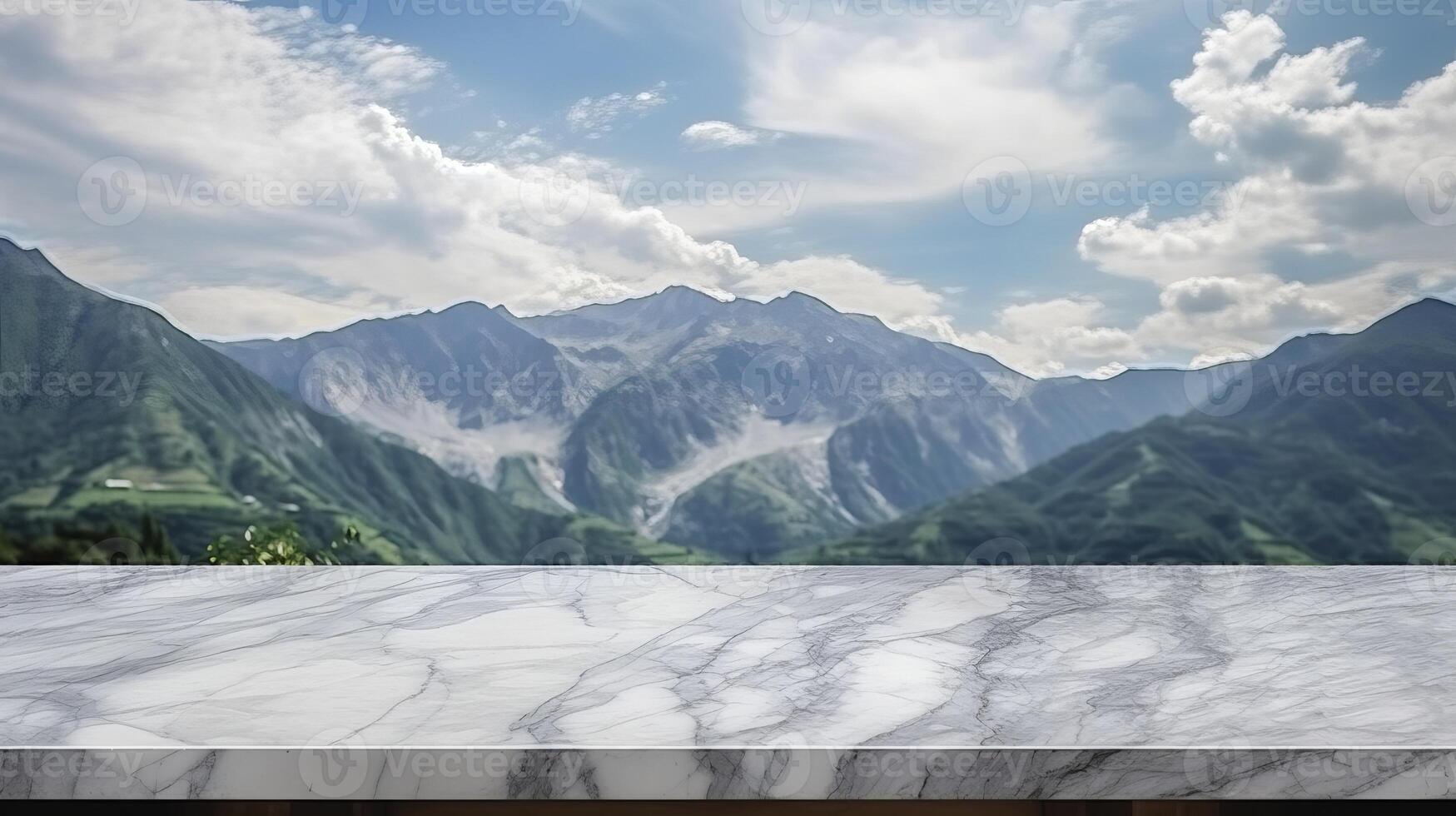 Marble surface table tabletop with mountain establishment for thing show appear. Creative resource, Pro Photo