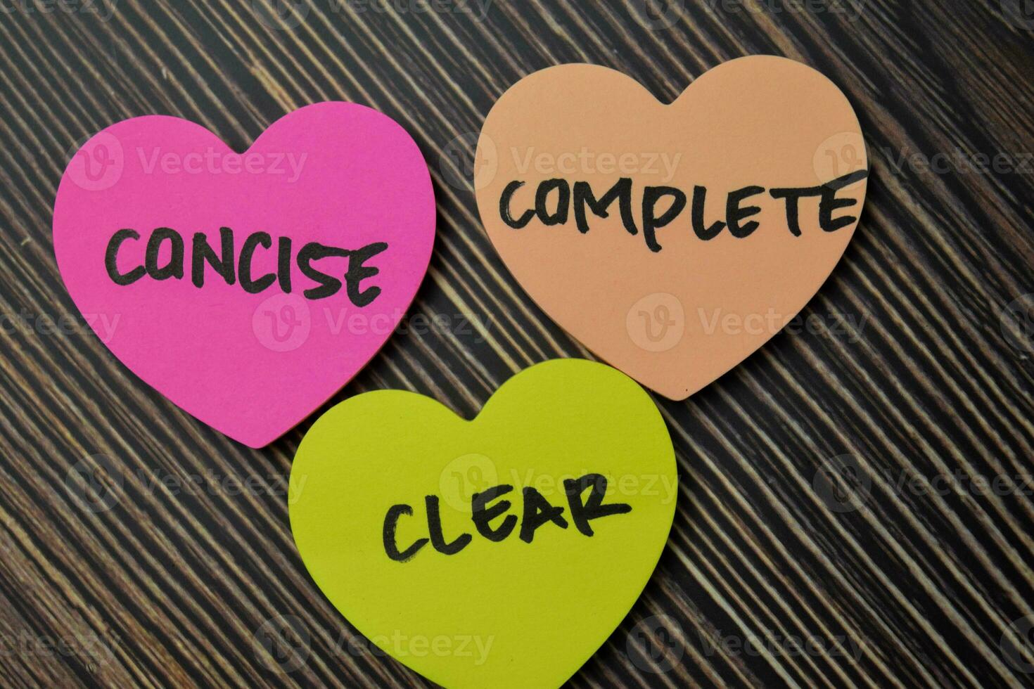 Concise Complete Clear write on sticky notes isolated on office desk. Pro Photo